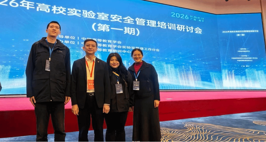 1月9日至12日,2026年高校实验室安全管理培训研讨会(第一期)在广西南宁举行。会议紧扣“完善安全工作体系、提升本质安全水平”主题,深入贯彻教育部实验室安全管理要求,为全国高校搭建安全管理经验互鉴、创新路径探索的优质平台。学校建安部安全管理办公室雷建华主任及伟德官网杨琨、郑温婷、翟艳花等参会学习交流。