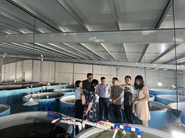 考核专家组还实地考察了学生开展课题研究、实践实习的研发平台和实践基地。陈善真博士带领老师们参观了海大研究院,并介绍研究院的运行管理情况。徐斌博士带领老师们参观了海兴农工厂化育种基地,学生的工作和生活场所。海大集团现代化的硬件设施、完善的研发场所和优良的工作环境给老师们留下了印象深刻。
