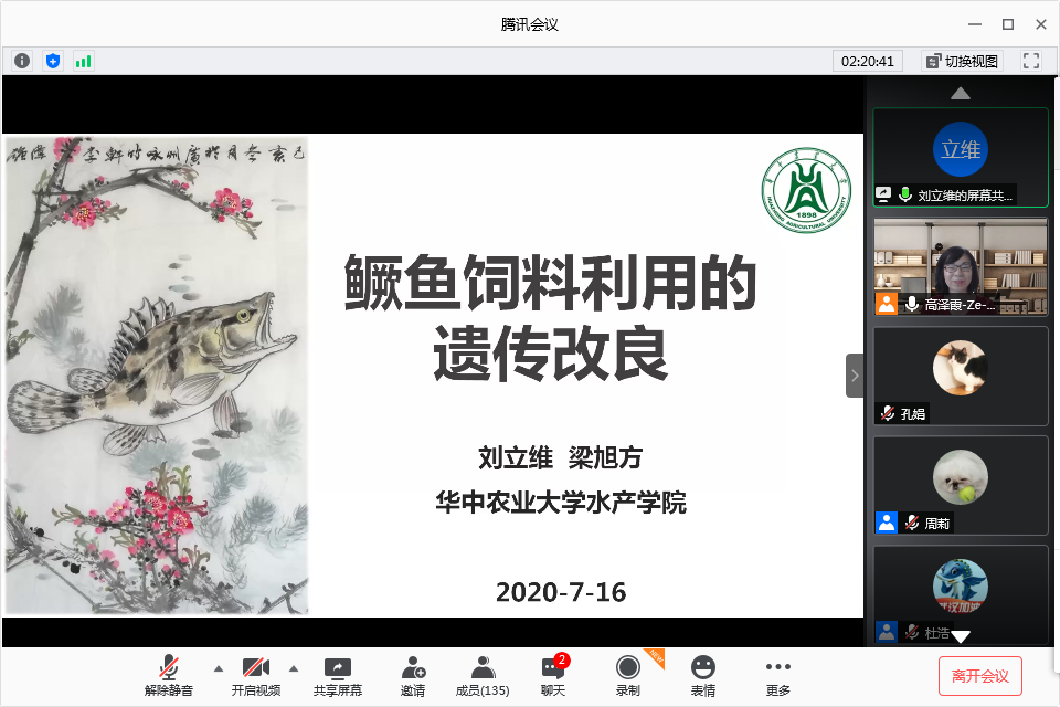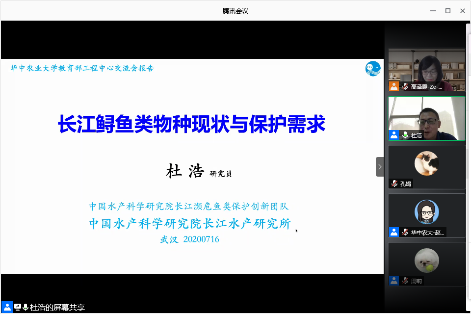(伟德国际1946官方网通讯员 孔娟 供图 孔娟)7月16日上午8:20--12:30,伟德国际1946官方网在线上腾讯会议组织召开依托于“长江经济带大宗水生生物产业绿色发展”教育部工程研究中心的“动物种质资源保护与挖掘利用”平台学术研讨会,报告由伟德官网副院长高泽霞教授主持,特邀中国海洋大学、中国科学院水生生物研究所、中国水产科学研究院黄海和长江水产研究所以及伟德官网共9名专家进行学术分享,内容丰富而精彩。
