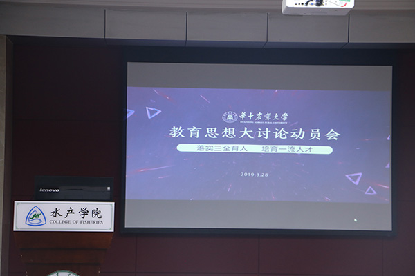 核心提示:3月28日下午,学校以“落实三全育人,培养一流人才”为主题的新时代教育思想大讨论动员大会在国际学术交流中心一楼报告厅召开,为全面深入学习会议精神,学院组织全体教职工以及学生代表在水产楼109进行视频观看、学习。