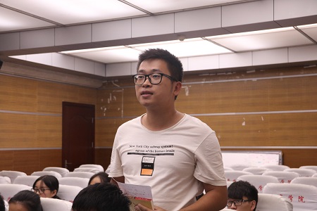 讲座的最后,缪炜老师与同学们进行了问题互动。水产1602班的王祎程同学向老师询问科研经验:刚进实验室,导师最看中学生的特质或素质是什么。“最重要的是把想要的,想达到的目的好好跟老师交流出来。每个人都有自己的特点,老师也有不同的看法。”缪老师回答到,“交流出来,和老师一起找到适合自己的,或者需要改进的才是关键,有问题就改嘛。”