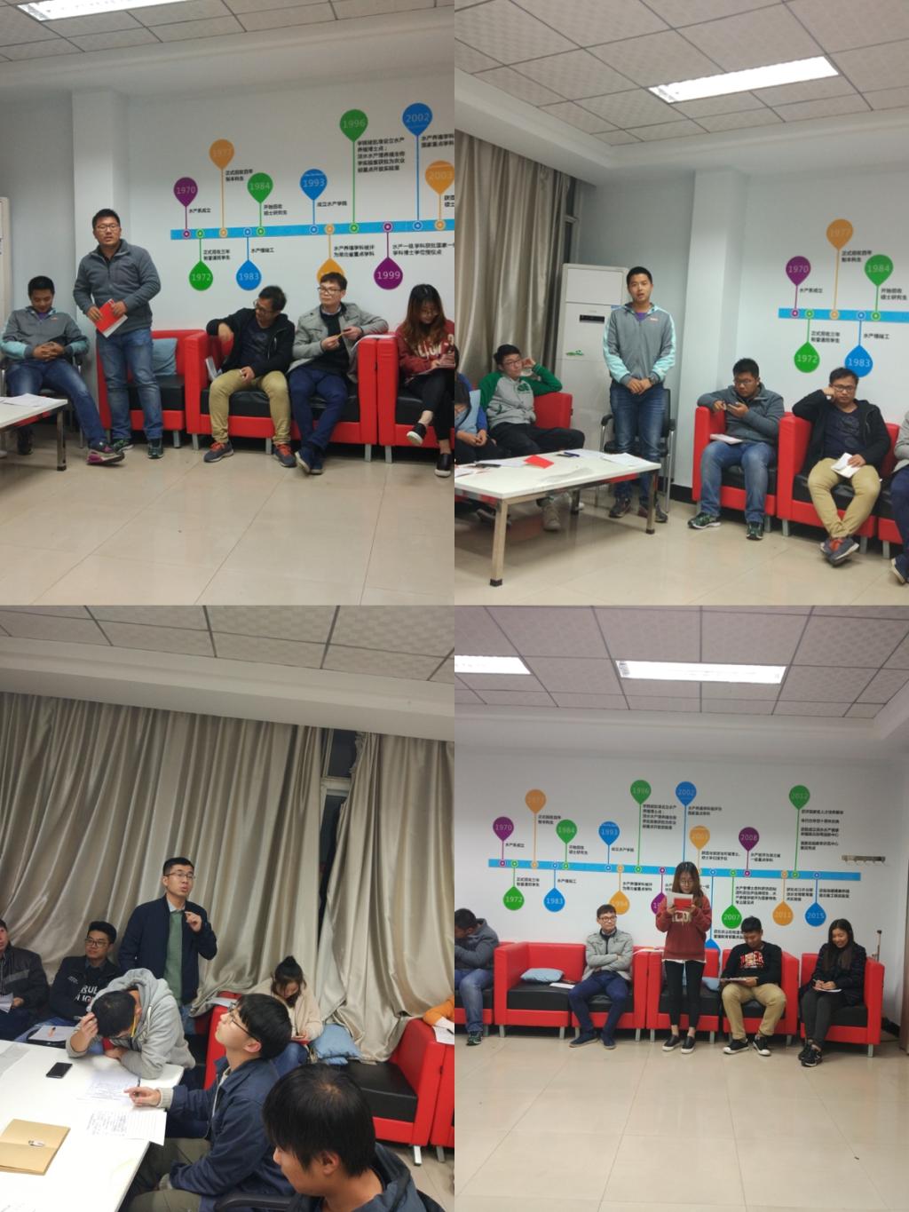 内容提要: 11月17日晚8时,渔业资源与环境研究生第一党支部在水产楼415会议室召开入党积极分子党员群众座谈会。参加本次交流会的有支部全体党员,入党积极分子和群众,会议由组织委员李昊主持。