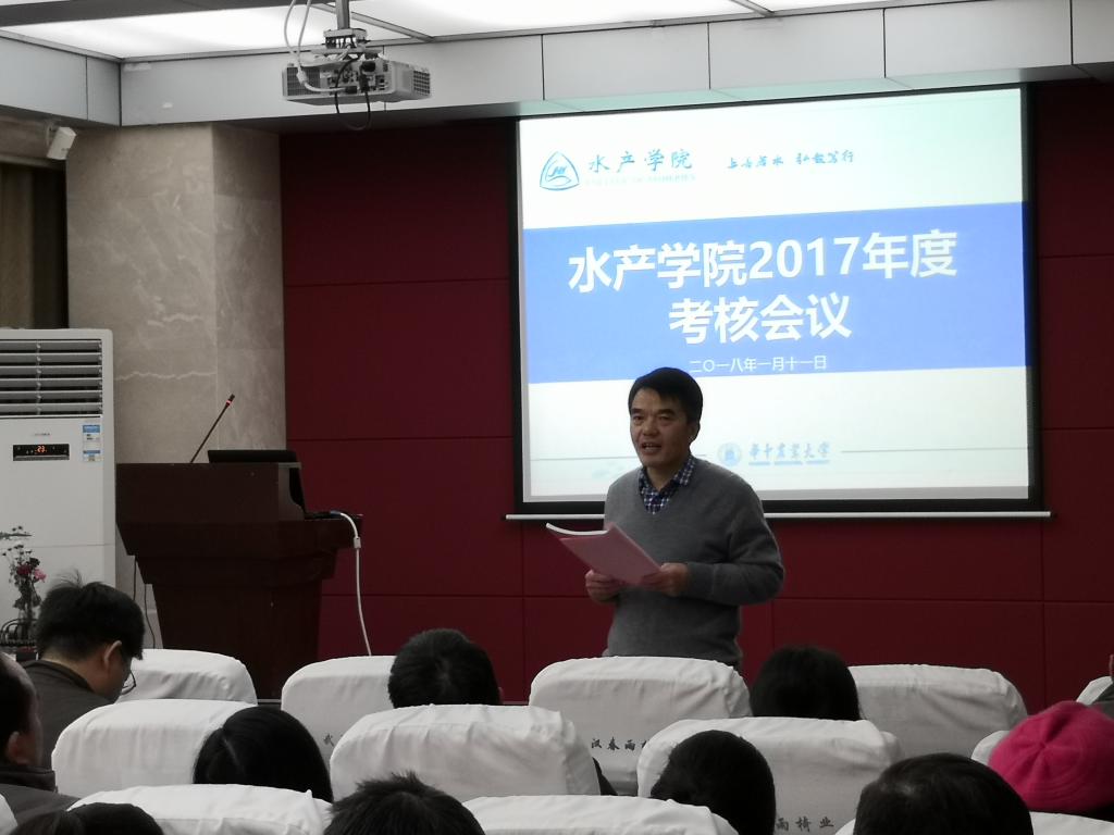 1月11日下午2:00,伟德国际1946官方网2017年年度考核会议在水产楼109顺利进行,学院党委书记张韶东、院长王卫民等九十余名教职工参加了本次会议。会议由张韶东主持。
