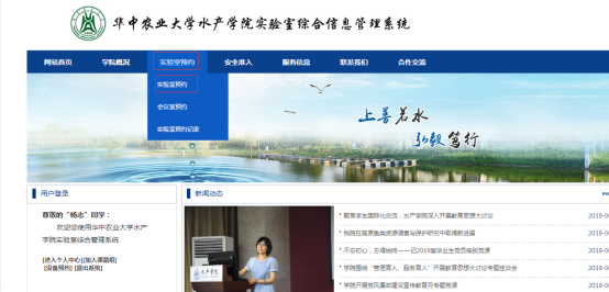 预约时,点击实验室智能化管理网站首页标题栏的【实验室预约】,可分别选择【实验室预约】和【会议室预约】模块,如下图所示。