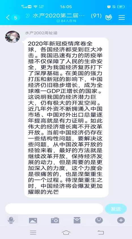 通过这次理论学习日的学习,同学们对中国在疫情期间的经济发展状况有了大致的了解,并且也寄寓了对未来经济发展的期盼。本次理论学习日圆满结束。