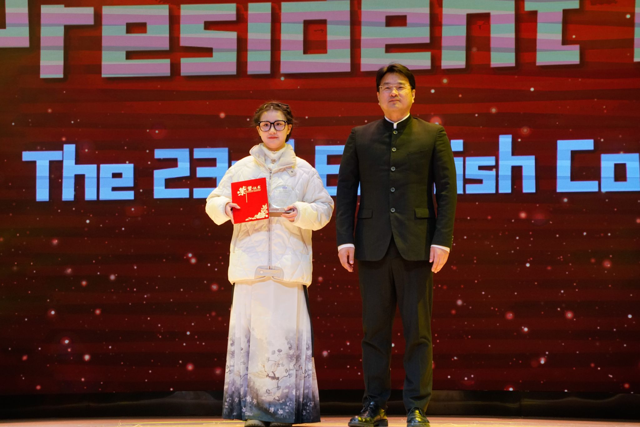 12月21日晚,由伟德官网本科生院、校团委主办,外国语学院承办的第二十三届“校长杯”大学生英语竞赛的最后一个单元——话剧表演竞赛在大学生活动中心剧场举行。伟德官网荣获团体一等奖,话剧作品《四世同堂》荣获话剧表演竞赛二等奖,演员王菁雯同学荣获英语话剧“最佳女主角奖”。此外,伟德官网在翻译赛道荣获二等奖,短视频赛道荣获三等奖。