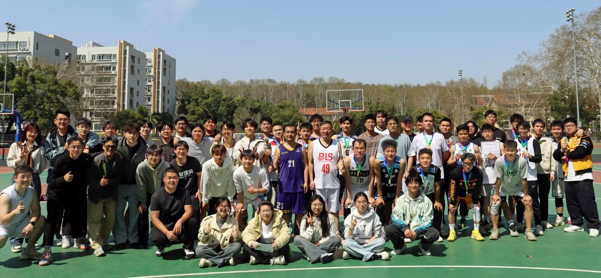 篮球划出的抛物线伴随风声,在阳光下点亮每一张汗水淋漓的脸庞。受伤的痛楚,队友的激励,手中的奖牌,都将组成更好的我们,愿每位热爱运动的同学,都能在赛场上展现自己的最佳状态!
