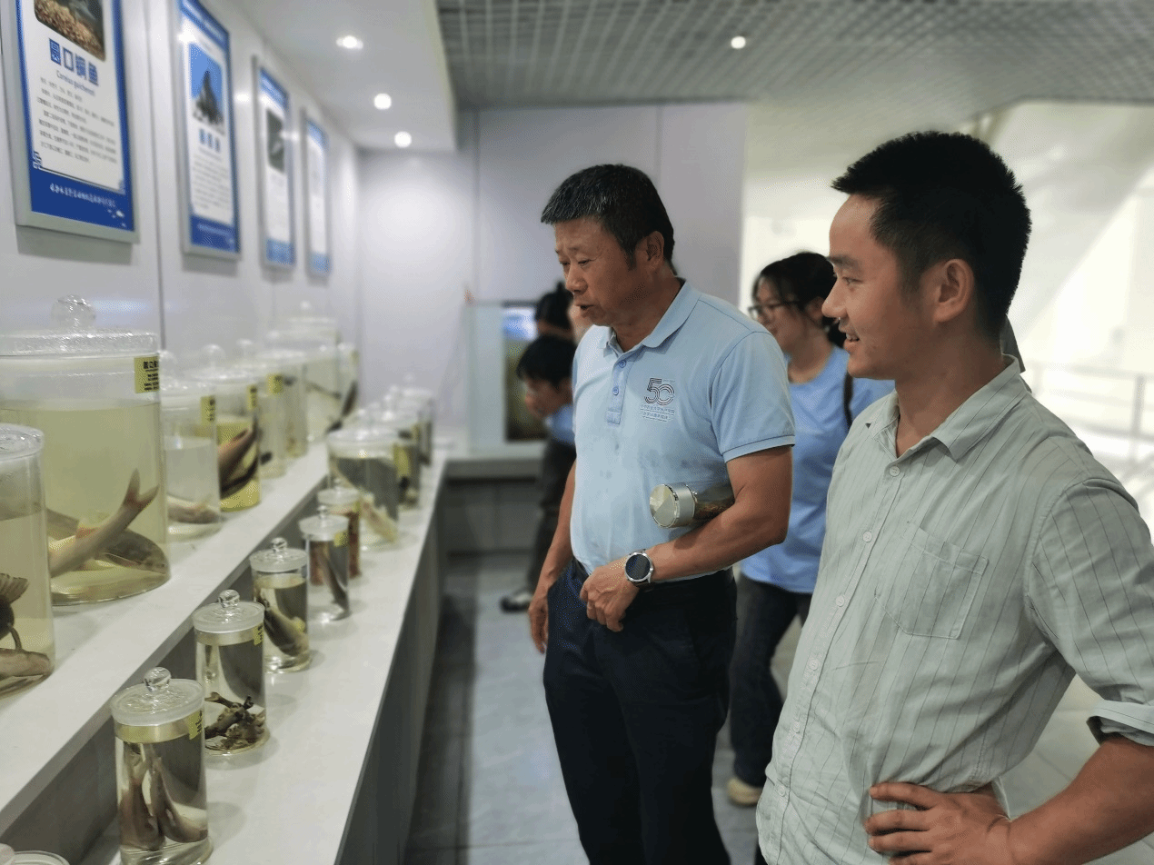 渔政人员带领实践团成员参观鱼类标本 何俊娴摄