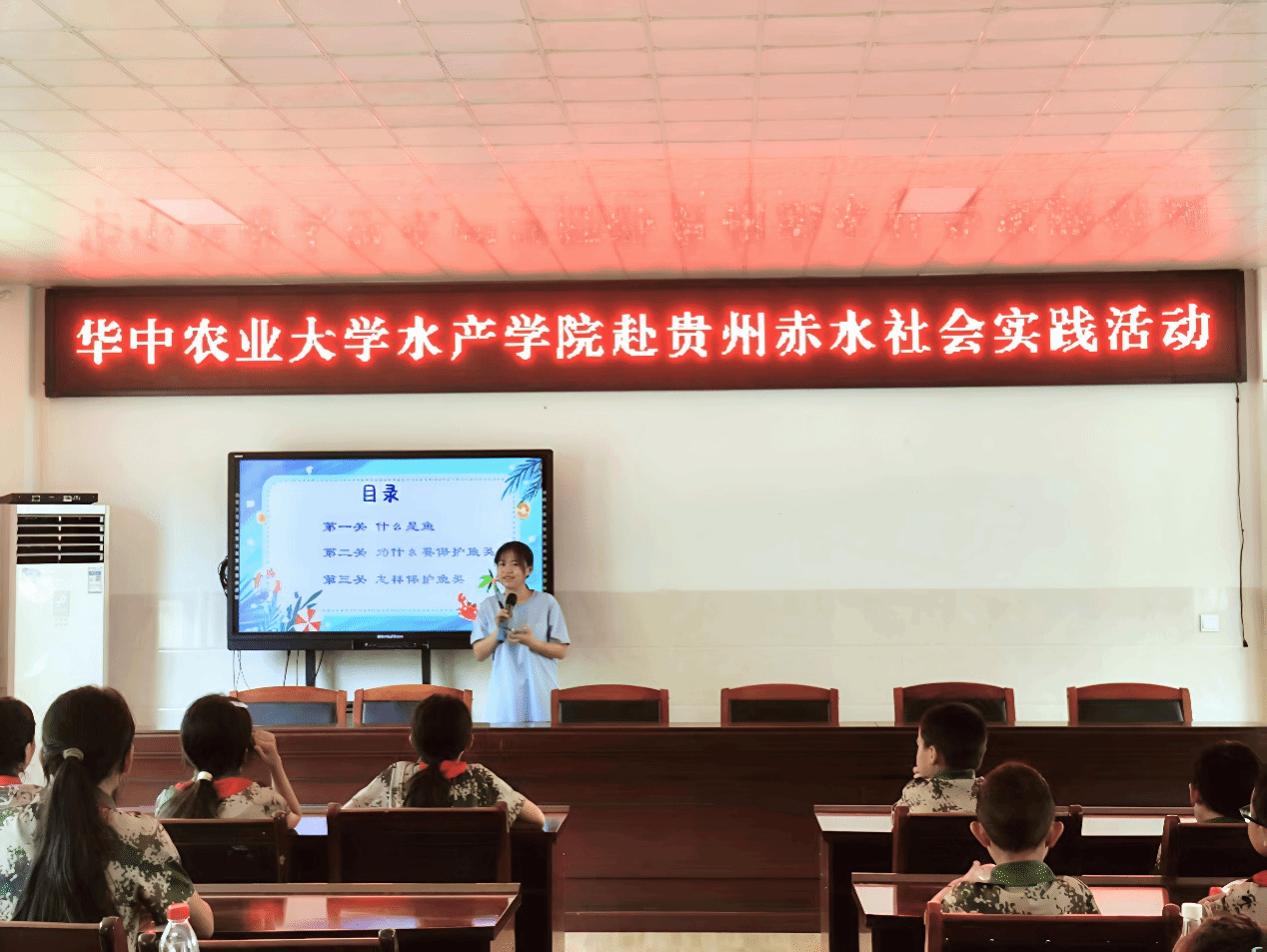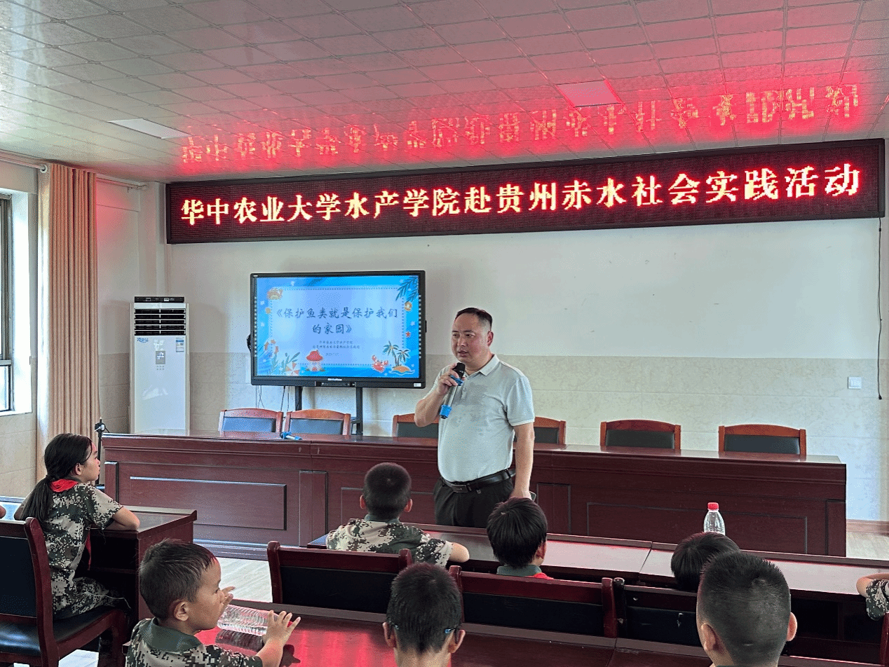 7月17日,伟德国际1946官方网暑期社会实践团走进贵州省赤水市红军小学,以“保护鱼类就是保护我们的家园”为主题,为50余名小学生带来了一场别开生面的生态宣讲活动。通过趣味闯关、动画展示、互动问答和创意涂鸦等形式,团队成员在欢声笑语中传递鱼类保护知识,播撒生态文明的种子。