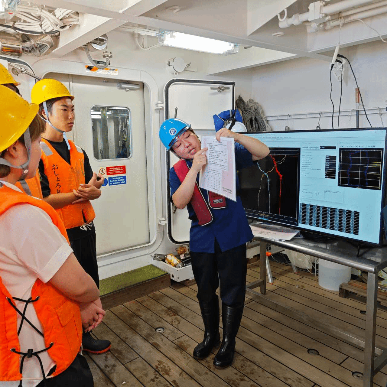 8月23日,团队赴日本北海道开展国际实践。在北海道大学科研团队的协助下,成员登上调查船参与海洋资源实地考察,系统记录水质参数、浮游生物种类与密度,并对海面漂浮物、垃圾分布及赤潮现象进行影像采集与样本分析。