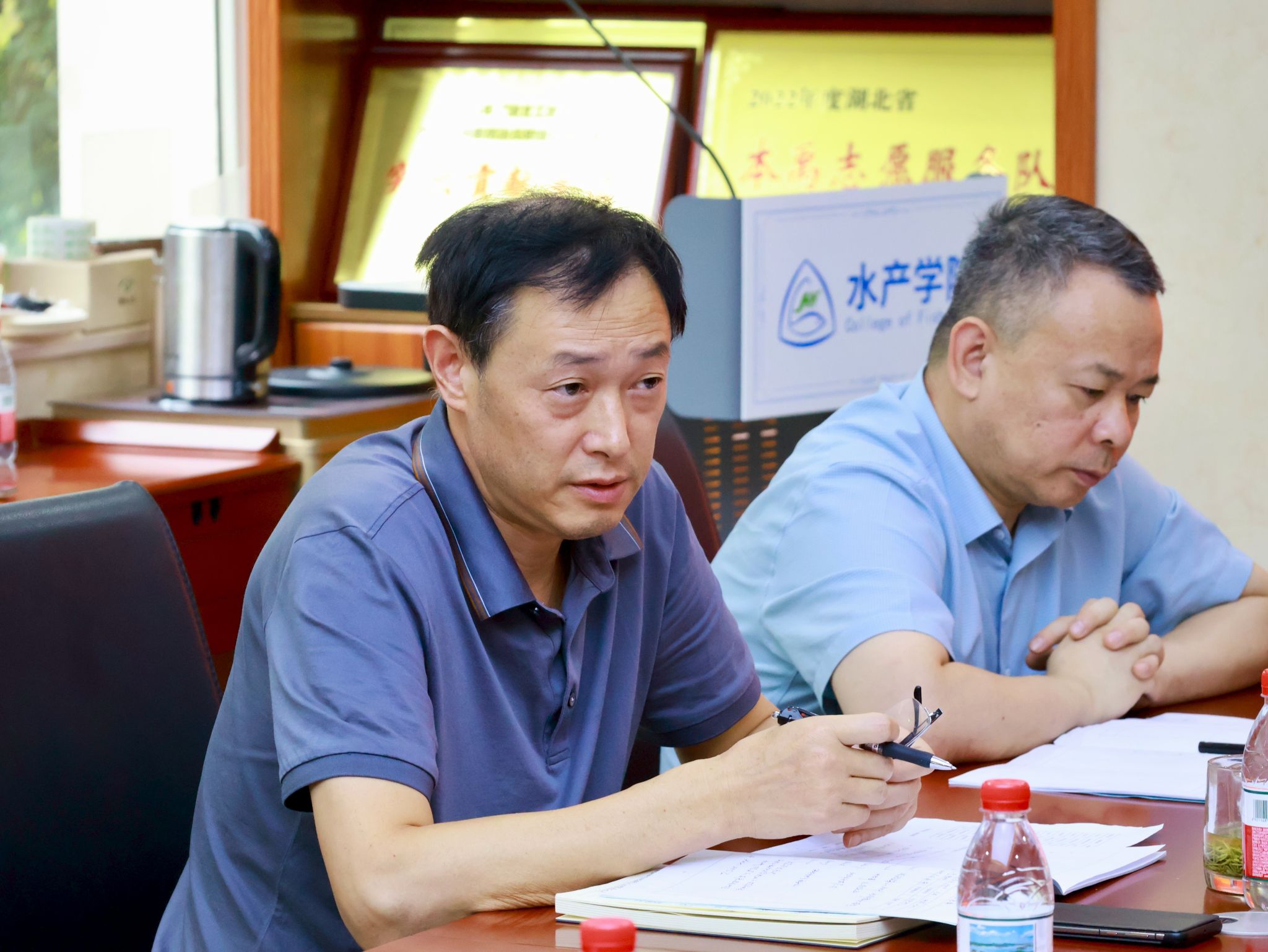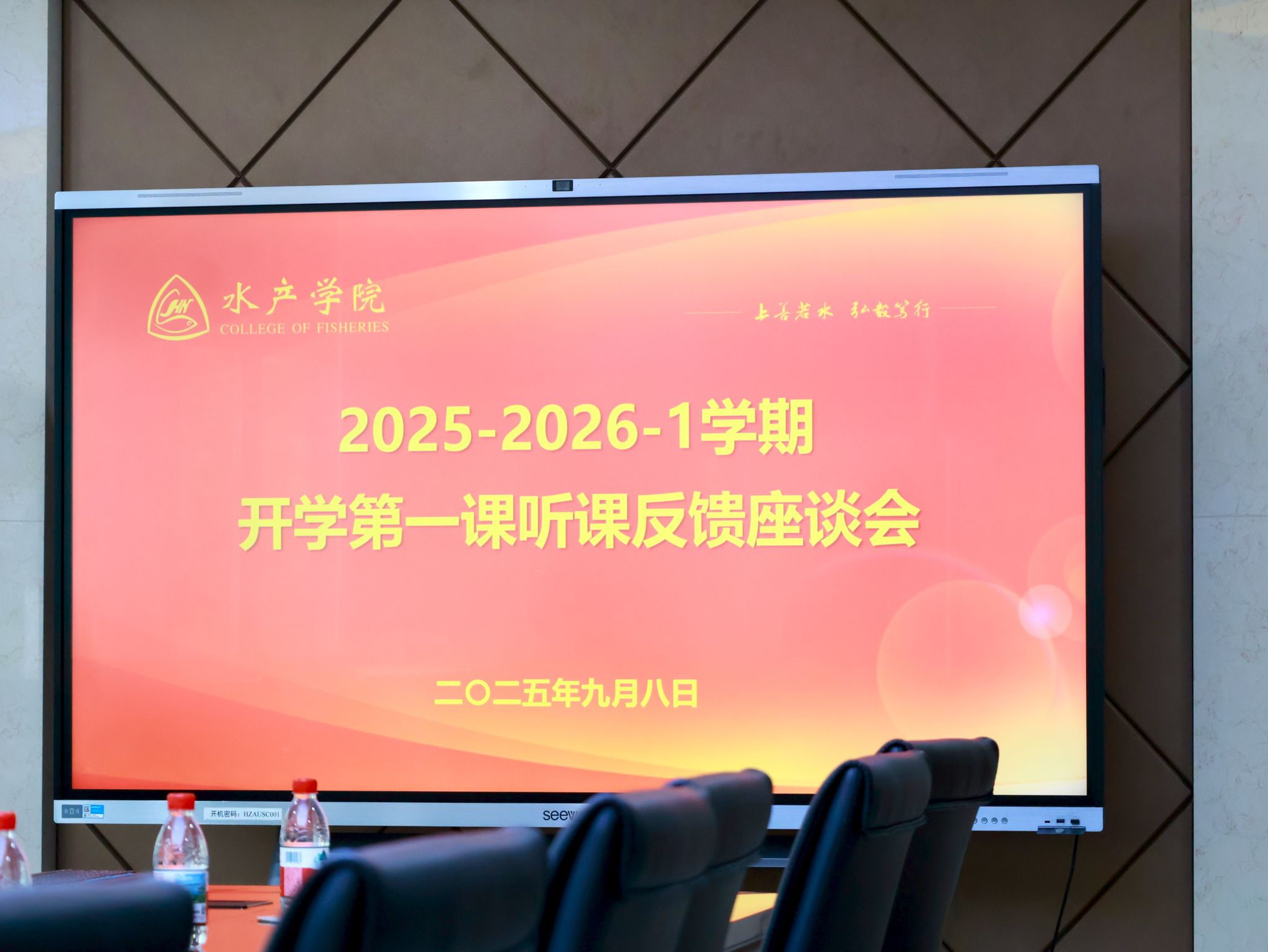 为进一步提升本科及研究生课堂教育教学质量,促进人才培养,9月8日下午,新学期开学第一课听课交流会在水产楼A201召开。学校监督检查室主任邹亚、图书馆副馆长张柱红、学院党委书记秦长平、党委副书记曹玉琼、副院长沈继斌、本科生院运行处向佳玲及被听课任课教师参加座谈会,会议由副院长沈继斌主持。
