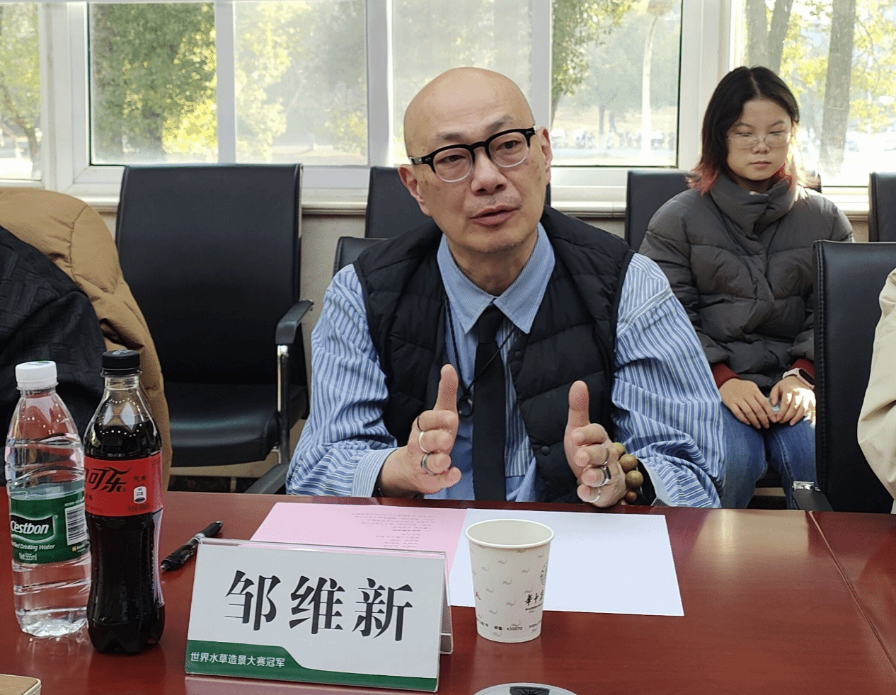 与会学生代表结合实习实践经历,从企业指导、技能培训等方面提出了建议。夏成星老师则从课程教学角度,提出可通过优化水草配置、利用物种多样性降低维护难度,提升景观可持续性。