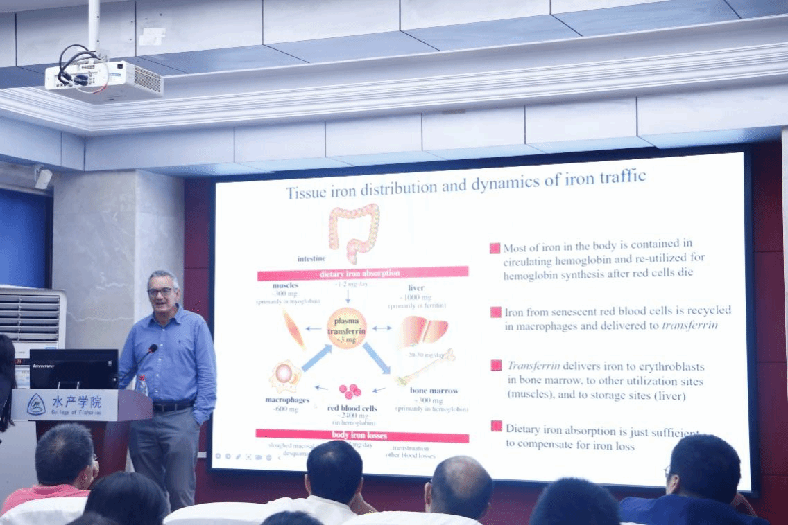 近日,伟德官网2025年第07期(总420期)“水产讲坛”在水产楼A座201报告厅举行,特邀 Kostas Pantopoulos 教授作专题学术报告,报告题目为“Systemic iron metabolism in health and disease: Lessons from mouse models”。Kostas Pantopoulos 教授主要以小鼠为模型,介绍他实验室在个体水平的铁代谢及其调控领域的研究成果,为理解铁元素的生理功能及其相关病理模型中的铁代谢调控特征提供了新的视角。本次讲座由水产动物分子营养方向的罗智教授主持。