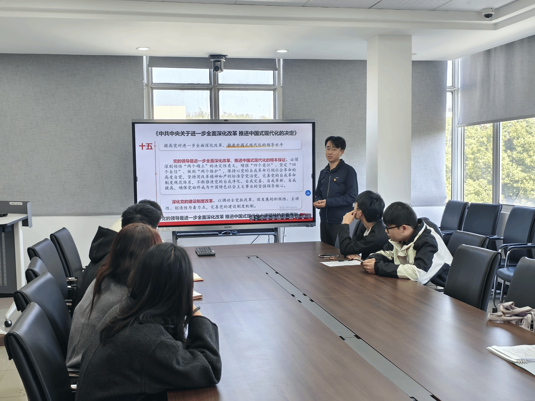 最后,孙琪栋同志从“学习教育制度改革”“干部人事制度改革”“组织建设制度改革”和“法规建设制度改革”四个方面对深化党的建设制度改革的重点任务进行了剖析。他还谈到,当前正值学校召开第十一次党代会,党员同志们要认真学习领会党代会报告中有关党的建设的重要论述,将其作为生动的校本素材进行学习,助力大家加深对“深化党的建设制度改革”这一宣讲主题的理解。