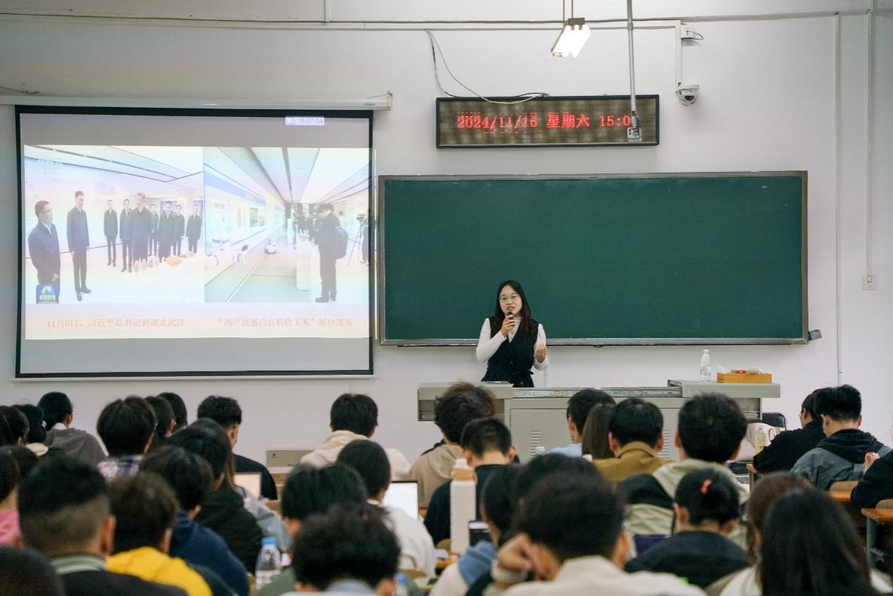 水产类2304班刘航在课后表示:“姜权权老师以高产高蛋白宜机收玉米、无肌间刺武昌鱼等源于伟德国际1946官方网的例子,使‘以高质量基础研究推动高水平科技自立自强’更加具像化地呈现在我们的眼前。发展高质量基础研究的基础在人才,我们作为高校学生、时代青年,应筑牢专业基础,提高创新能力,厚植家国情怀,心系“国之大者”,争做拔尖创新人才,为支撑基础研究发展提供不竭动力。”