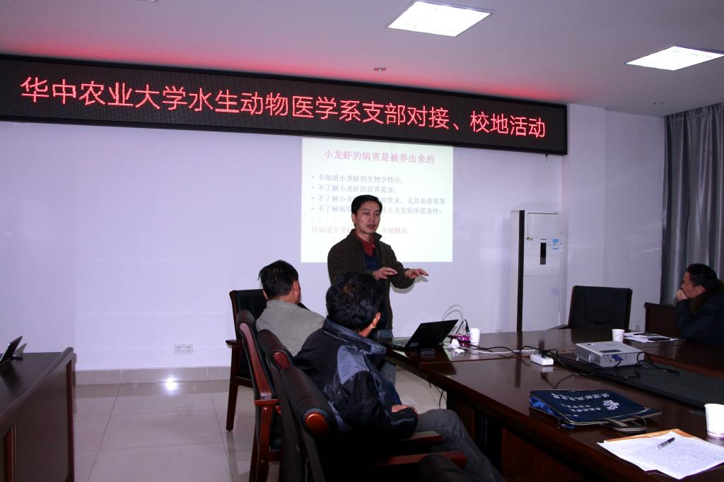 最后,伟德国际1946官方网水生动物医学系教工党支部党员顾泽茂同志给大同湖管理区基层技术人员和渔民作了《小龙虾健康养殖与病害防控》的培训报告。
