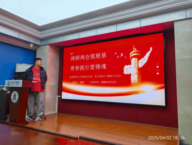 为深入学习贯彻习近平新时代中国特色社会主义思想,全面把握全国两会精神,践行新时代雷锋精神,筑牢青年党员使命担当,伟德国际1946官方网鱼类营养与生理研究生第一党支部于4月2日举办“深研两会筑根基 青春践行雷锋魂”主题党日活动。支部全体党员通过理论学习的方式,深化对国家战略和雷锋精神的理解。