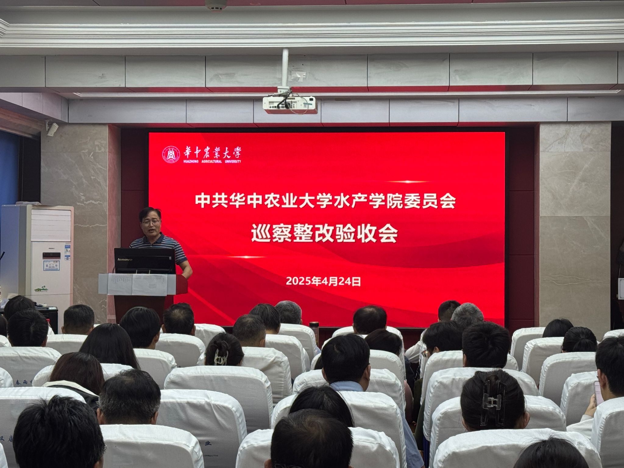 4月24日下午,伟德国际1946官方网党委巡察整改工作验收会在水产楼A105报告厅召开。校党委副书记、纪委书记、巡察工作领导小组副组长廖济忠,党委巡察工作办公室主任、第三巡察组组长胡守强以及巡察组的其他同志,学院党政领导班子成员、教职员工以及离退休代表、学生代表参加会议。会议由院长张永安主持。