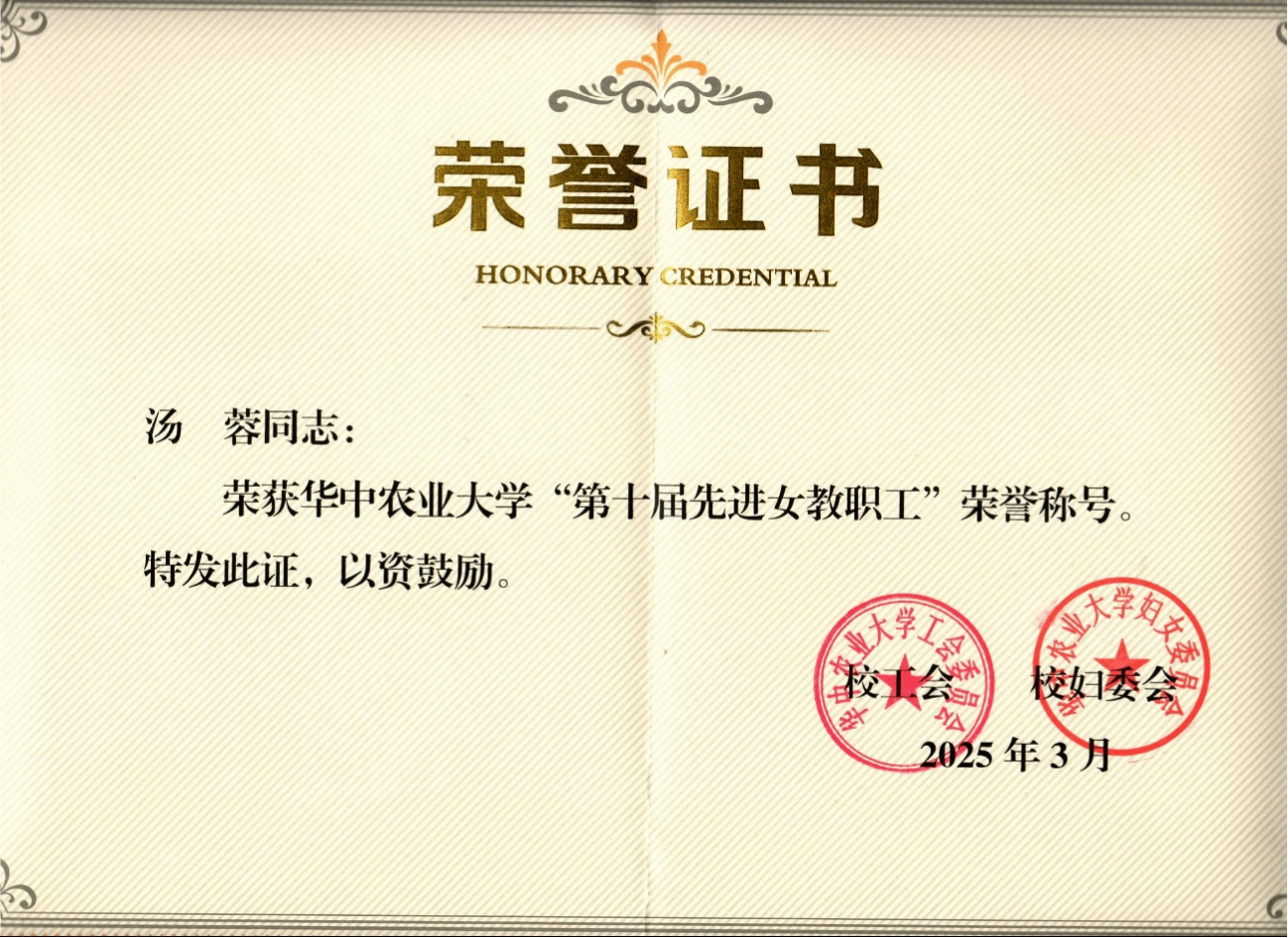 在育人和科研的道路上,汤蓉始终温暖且坚定地前行,为学子们点亮前行的灯塔,同时也在科学的沃土上书写属于自己的璀璨篇章。