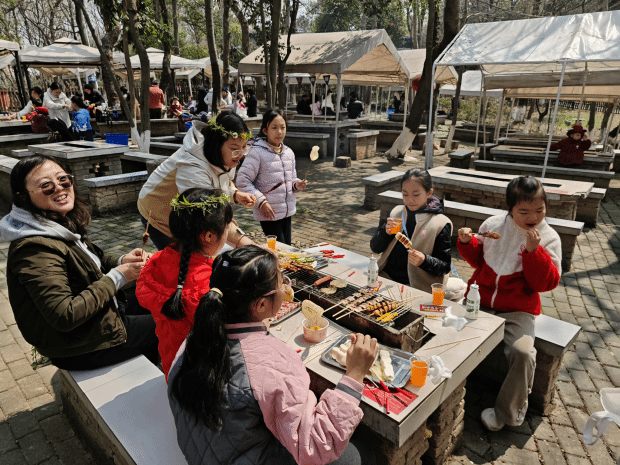 游戏过后,大家期待已久的自助烧烤环节拉开帷幕。烧烤架上,食材在炭火的烘烤下滋滋作响,诱人的香气扑鼻而来。老师们纷纷化身 “大厨”,熟练地翻烤着肉串、蔬菜,孩子们则在一旁帮忙,兴奋地传递着食材和调料。大家围坐在一起,共享美食,欢声笑语回荡在空中。此时,享受的不仅是美食带来的愉悦,更是心灵的交流与碰撞,亲子间、同事间的距离在烟火气息中悄然拉近。