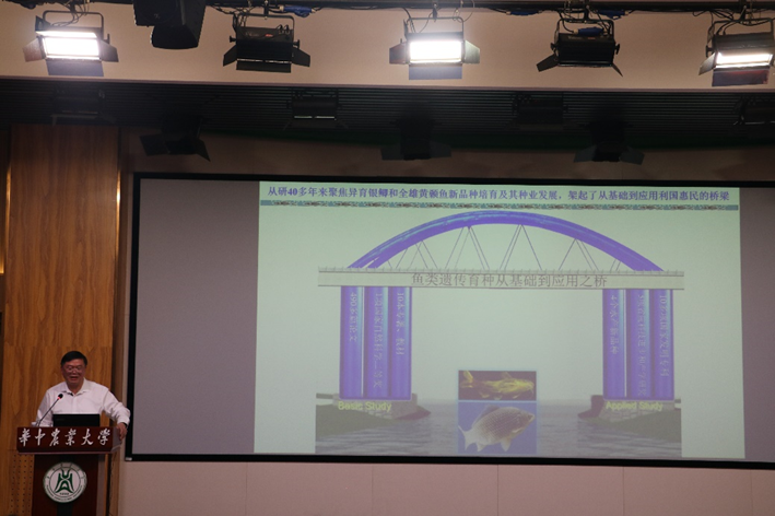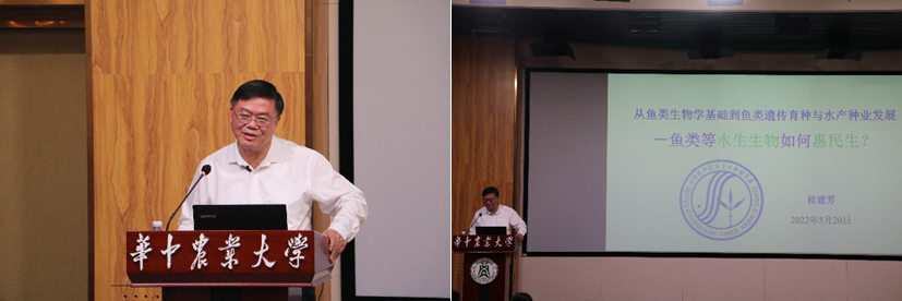(伟德国际1946官方网通讯员 吴淑敏 供图 王艾金)5月20日下午,中国科学院院士、中科院水生所研究员桂建芳做客水产讲坛,在农业微生物国家重点实验室B座1楼报告厅以“从鱼类生物学基础到鱼类遗传育种与水产种业发展——鱼类等水生生物如何惠民生?”为主题开展学术报告,伟德国际1946官方网师生近百人参加了此次报告会,会议由伟德国际1946官方网教授李大鹏主持。