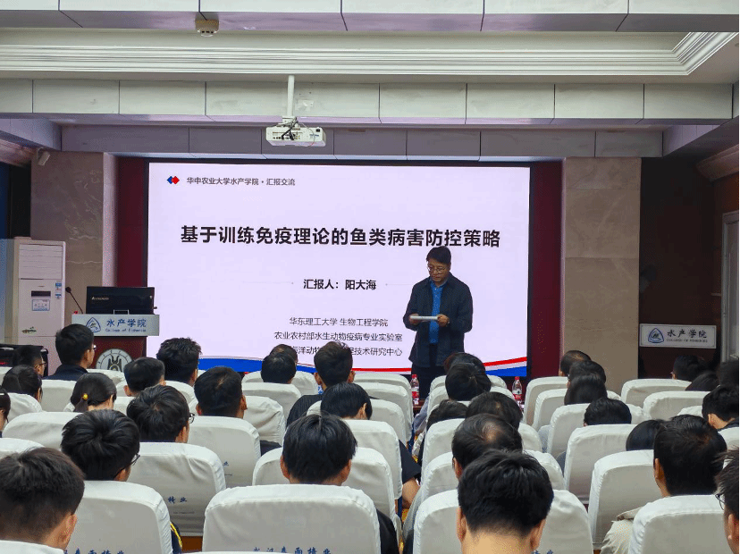 近日,伟德官网2024年第21期(总410期)“水产讲坛”在水产楼天辰报告厅A105举行,特邀华东理工大学阳大海教授作了题为“基于训练免疫理论的鱼类病害防控策略”的分享。