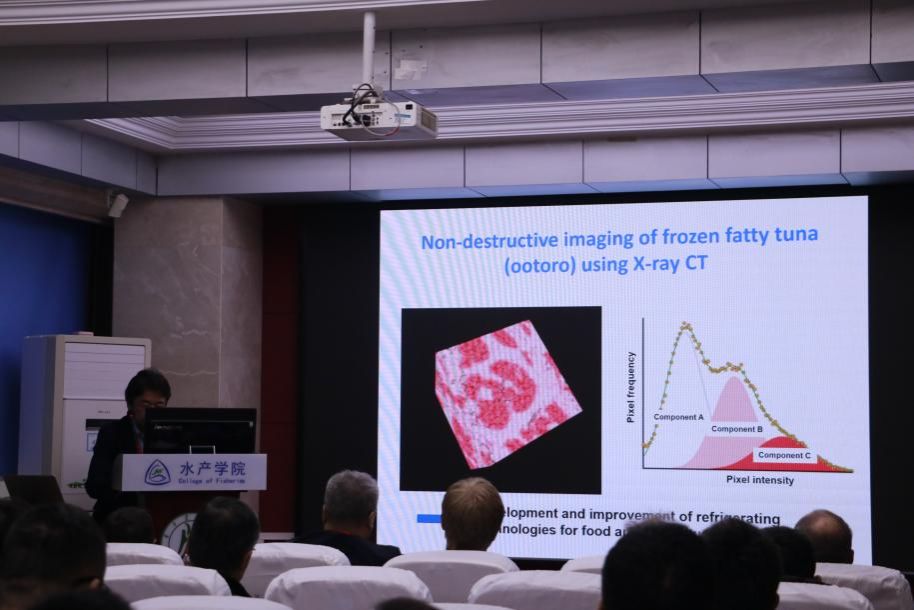 12月5日,首先,日本东北大学的中野俊树教授作了题为“用同步辐射无损分析检测鱼类品质”的报告。中野俊树教授首先介绍了同步辐射无损分析及其主要分析技术,并设想能够利用下一代同步加速器“NaNo TerTerasu”在农业和生命科学领域的应用。随后,他分享了冷冻金枪鱼的X射线CT无损成像研究,强调了同步辐射分析技术在鱼类耳石分析中的灵活运用,以及生物传感器在鱼类可视化中的突出优点。他表示,同步辐射分析技术在未来有望为促进食品安全和保障做出贡献。