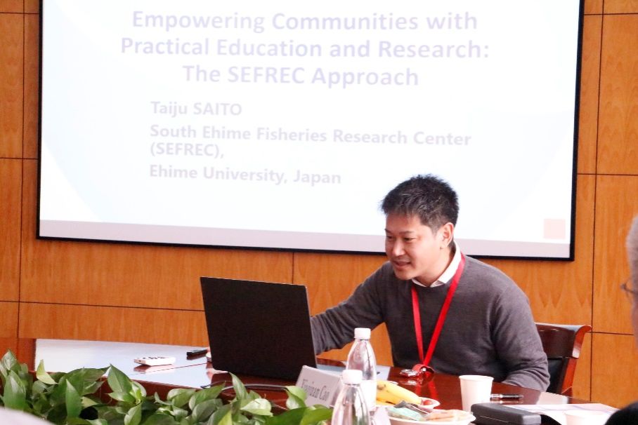 日本爱媛大学的Taiju SAITO副教授作了题为“通过实践教育和研究赋予社区权力:SEFREC方法”的报告。Taiju SAITO副教授提到,南爱媛渔业研究中心(SEFREC)致力于解决当地渔业面临的主要问题,例如:“如何提高鱼类养殖的质量?在人工苗种生产中需要注意哪些事项?如何有效控制有害微生物?”此外,该中心还促进大学与当地社区的融合,不仅通过实际教育和研究赋予社区活力,推动技术发展和创新,还为毕业生提供了就业机会。