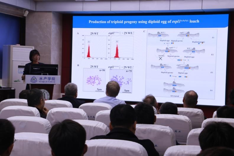 随后伟德国际1946官方网的曹小娟教授作了“泥鳅基因组及其与未减数配子形成相关的基因”的报告。曹小娟教授团队长期利用二倍体和多倍体的泥鳅展开研究,以细胞周期蛋白依赖性激酶1(cdk1)缺失的泥鳅和斑马鱼为对象,从全新视角来阐明未还原配子形成的机制;在此基础上提出创造鱼类多倍体的新策略,为推动水产养殖业的发展作出巨大贡献。