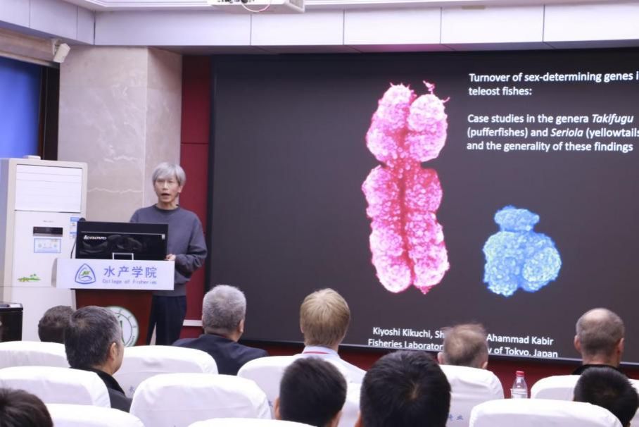 日本东京大学的Kiyoshi KIKUCHI教授作了题为“硬骨鱼性别决定基因的更替:以河鲀属和鰤鱼属为例的研究以及其发现的一般性”的报告。Kiyoshi KIKUCHI教授团队通过GWAS等技术对12种东方鲀属鱼类进行了研究,以确定这些鱼类的性别决定基因这一结论。Kiyoshi KIKUCHI教授团队发现Amhr2、GsdfY可能是鱼类性别决定基因的关键基因,且在上述3种鱼类中,Amhr2会被GsdfY所取代,说明鱼类性别决定基因的易位现象可能较为普遍。